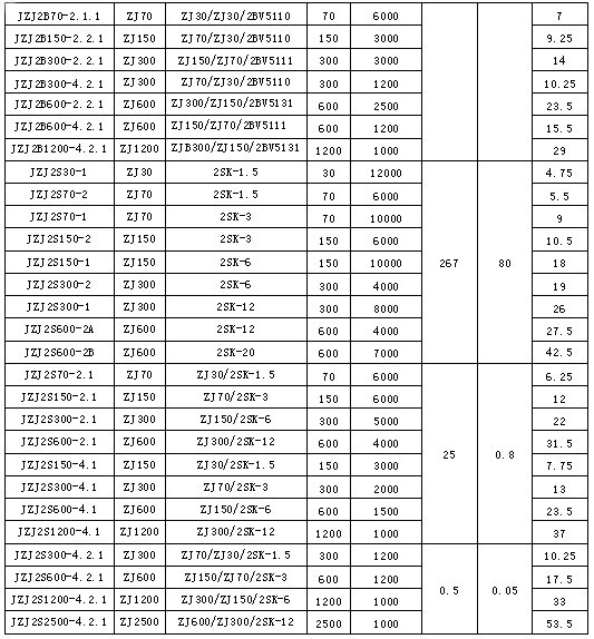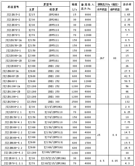JZJ2B系列羅茨水(液)環真空機組技術指標:
