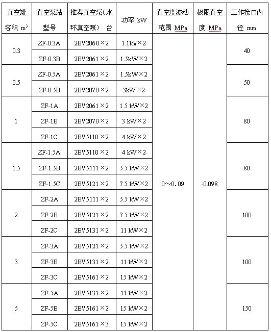 ZF系列真空泵站性能參數: